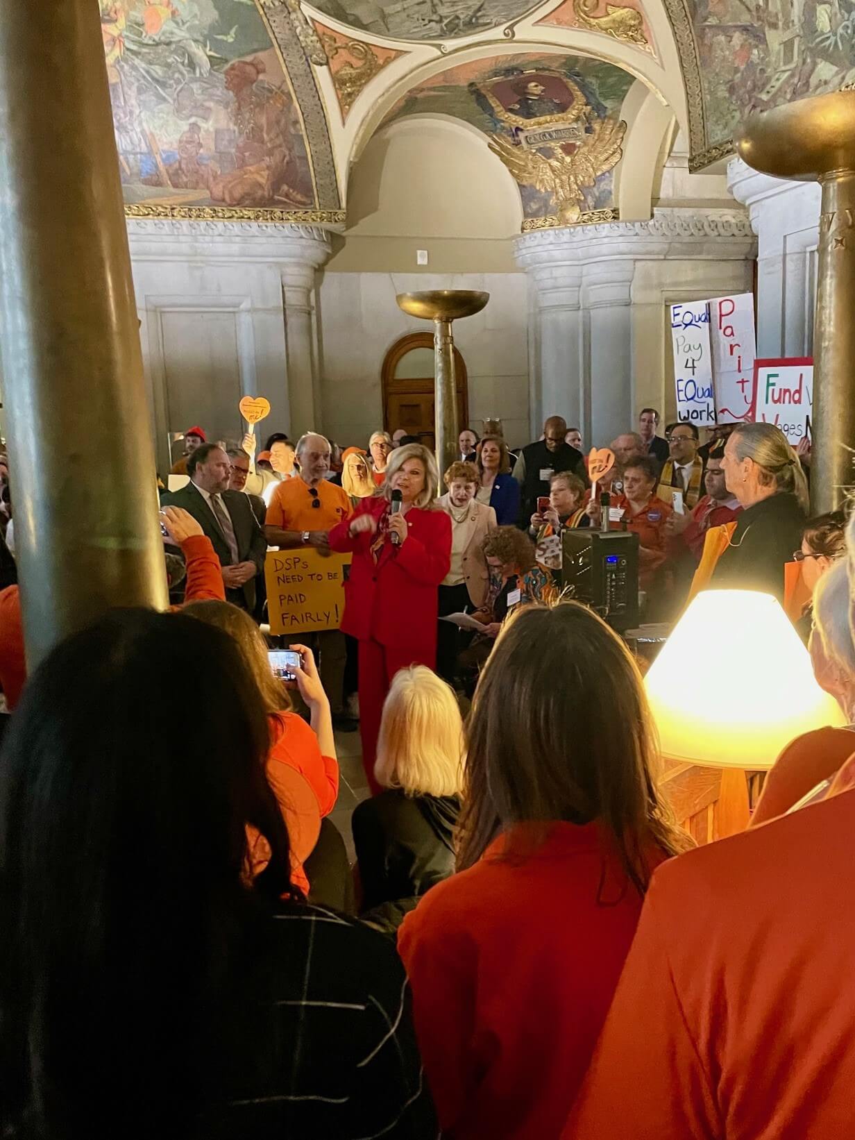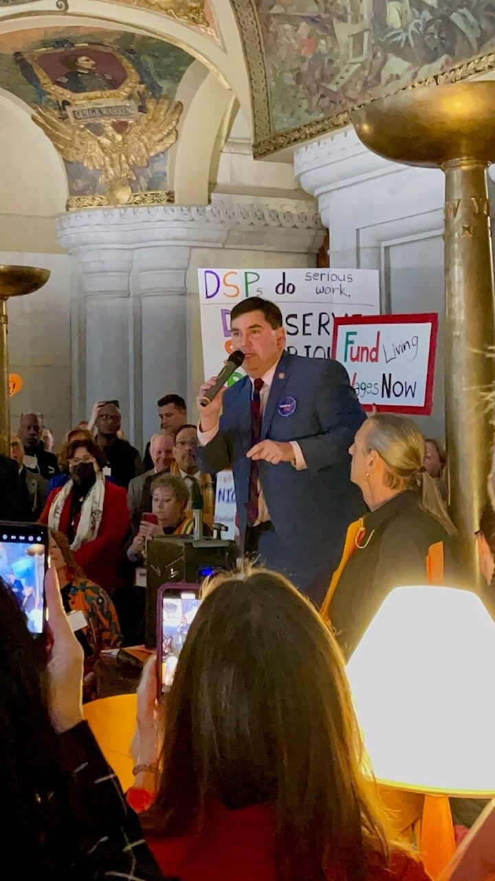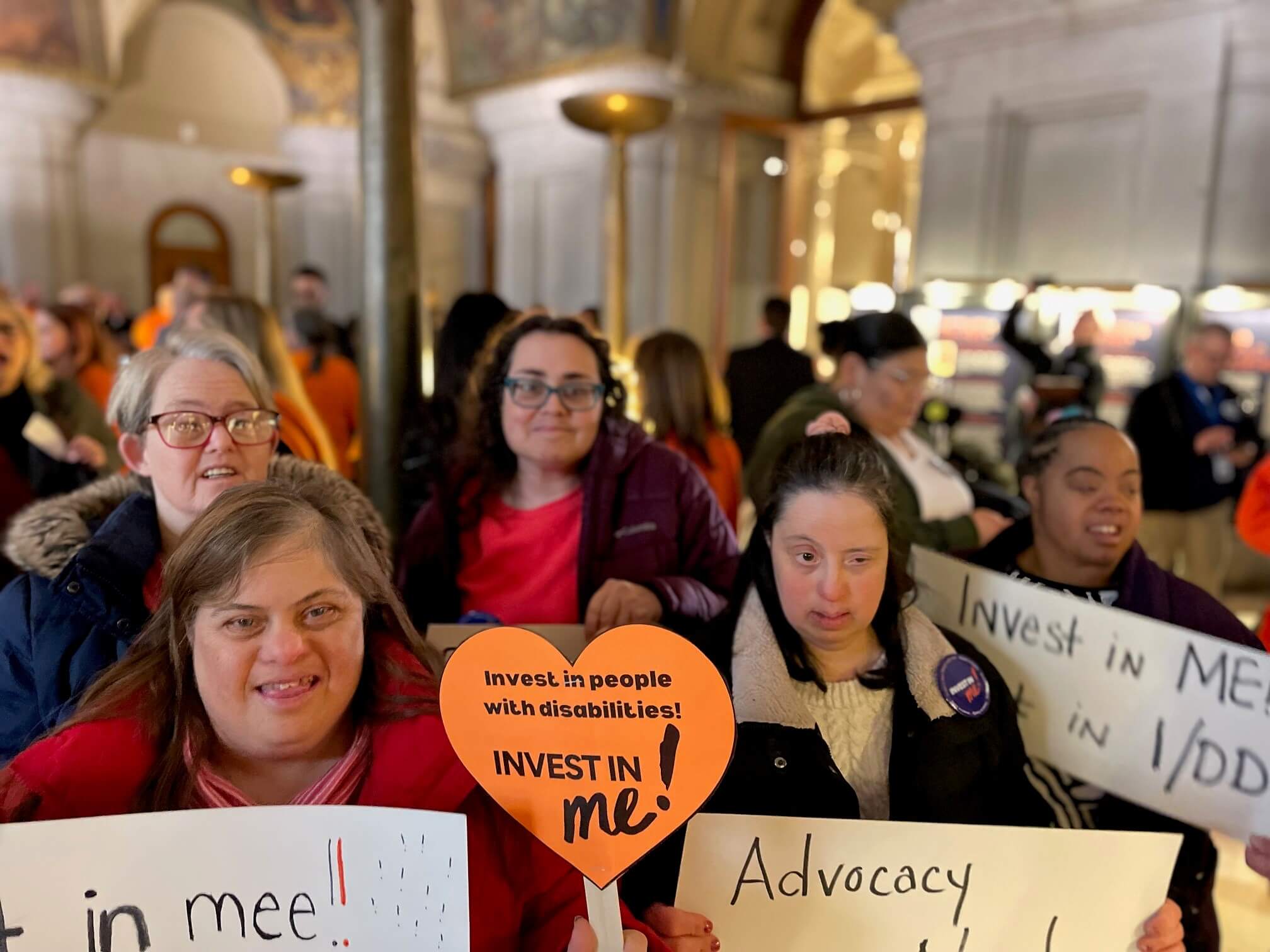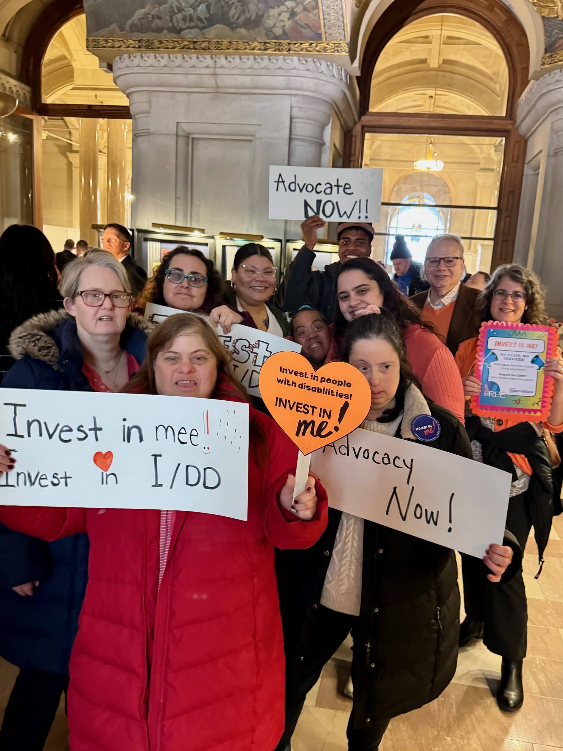 On February 12th, members of our Westbury house attended the NYDA Rally in Albany. They were accompanied by some of our amazing staff members, Giuseppa Bianco, Ava Adams and Matheiu Shillingford. Members made signs to show their support and had a wonderful time advocating for both staff and individuals.